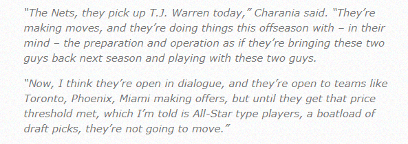 shams表示篮网引援TJ-沃伦,他们正在采取行动,他们休赛期的操作表明篮网已经做好了下赛季带回杜欧的准备。