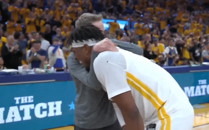 最后阶段,卢尼先是抢下前场板,助攻维金斯命中三分球。随后的压哨球,卢尼又扣篮命中!三节结束,卢尼已经得到了17分8板,似乎让人看到了他在西部半决赛第6场的发挥。解说员和球迷也纷纷盛赞卢尼,作为帮助勇士两度夺冠的功臣,卢尼此役再成奇兵。科尔也乐坏了,熊抱卢尼!