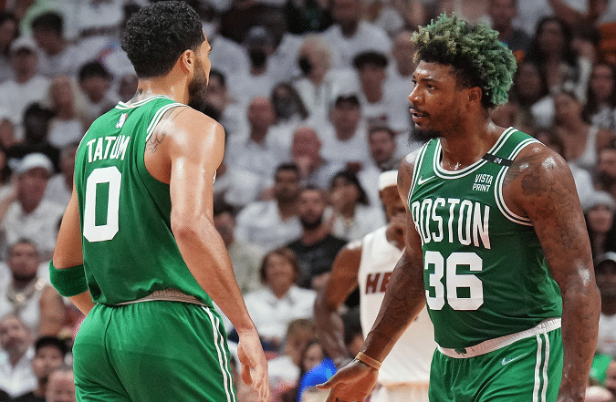 JRS直播05月20日讯 今天NBA季后赛东部决赛G2结束了争夺,最终凯尔特人客场取得了一场25分的大胜,系列赛大比分来到1-1平。斯玛特和霍福德归来之后效果立竿见影,尤其是砍下24分9篮板12助攻3抢断的斯玛特,不愧是本赛季常规赛最佳防守球员,他在攻防两端都贡献了超神的表现。双探花组合布朗和塔图姆合砍51分,两人手感都不错。热火的塔克遗憾伤退,巴特勒空砍29分6篮板3助攻的数据。