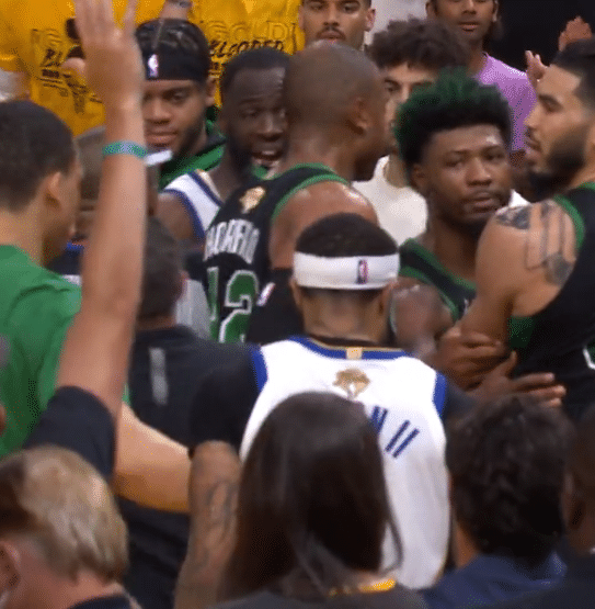 末节海参4分40秒,凯尔特人喊暂停时,格林险些和塔图姆引发冲突,当时小佩顿和追梦想去拿塔图姆手里的球,后者不给,两人便一路跟着,随后越来越多的人围过来,斯玛特第一时间劝阻,裁判也过来劝说,所幸双方没有打起来,这一幕真是火药味十足。