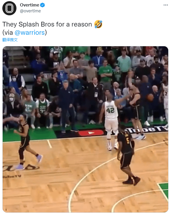 总决赛G4关键时刻第四节最后1分多钟,汤普森贴防造成杰伦-布朗失误出界,随后克莱与库里兴奋得挥拳庆祝,不论是左手还是右手,他们俩的动作都神奇同步;如此一幕体现出水花之间的默契,美媒Overtime直呼这就是他们称为水花兄弟的一个原因。