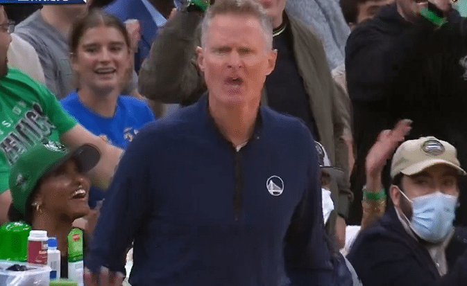 JRS直播06月11日讯 ,NBA总决赛凯尔特人和勇士迎来G4对决。首节比赛,凯尔特人28-27领先1分。来到第二节,场上出现非常火爆的一幕。勇士主帅科尔在裁判一次争议吹罚之后怒不可遏,朝裁判疯狂咆哮吃到技犯。全场绿军球迷则开始起哄,嘲讽这位冠军教头。