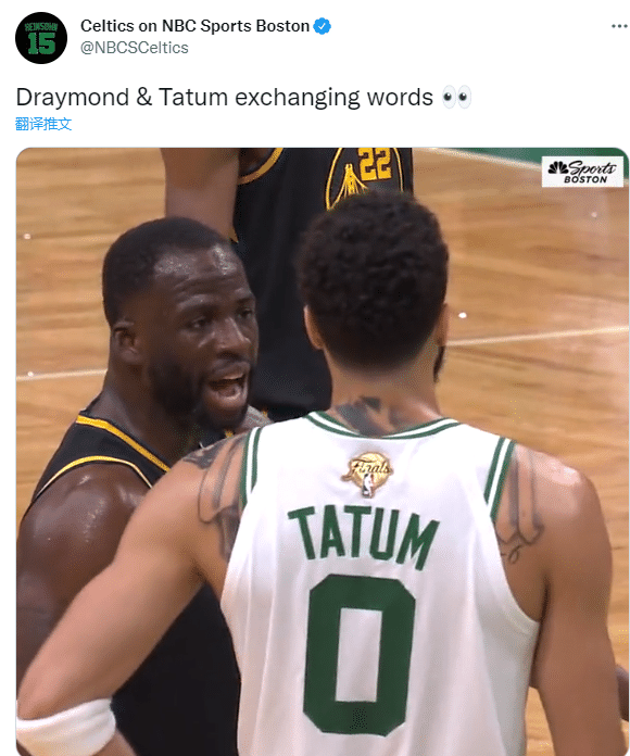 第二节,维金斯执行罚球时,格林又和塔图姆进行口头交流。