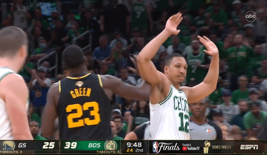 总决赛G3一战,主场作战的绿军士气大振,首节33-22领先勇士11分,杰伦-布朗单节17分大爆发,期间格林大帽布朗后冲着对手怒喷垃圾话,绿军球迷为布朗怒骂格林垃圾;第二节凯尔特人继续扩大领先,塔图姆续上火力,勇士所处的局面很被动,在这样的情况下,水花兄弟带队追分,8-0追到仅落后9分。