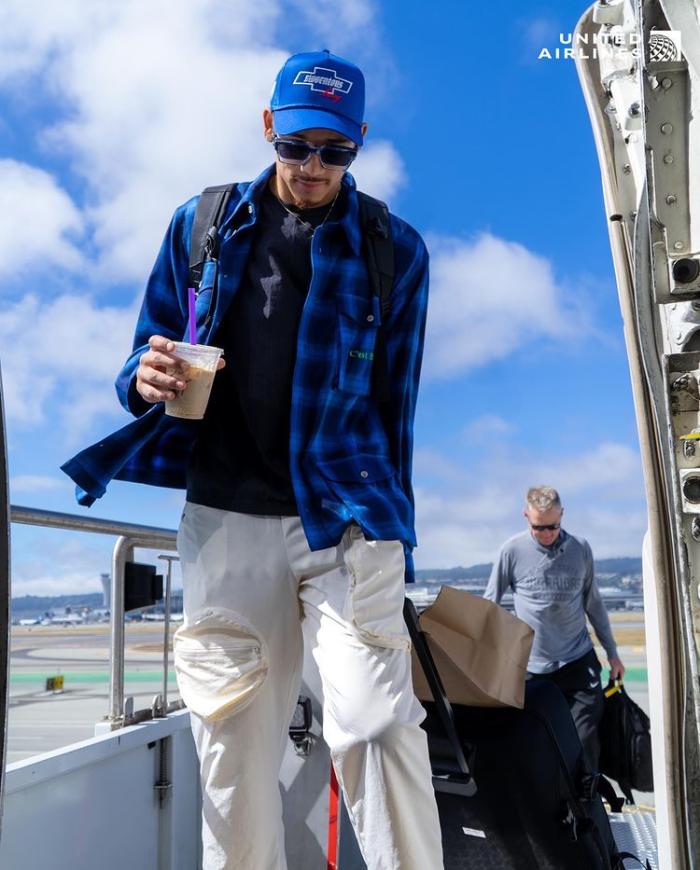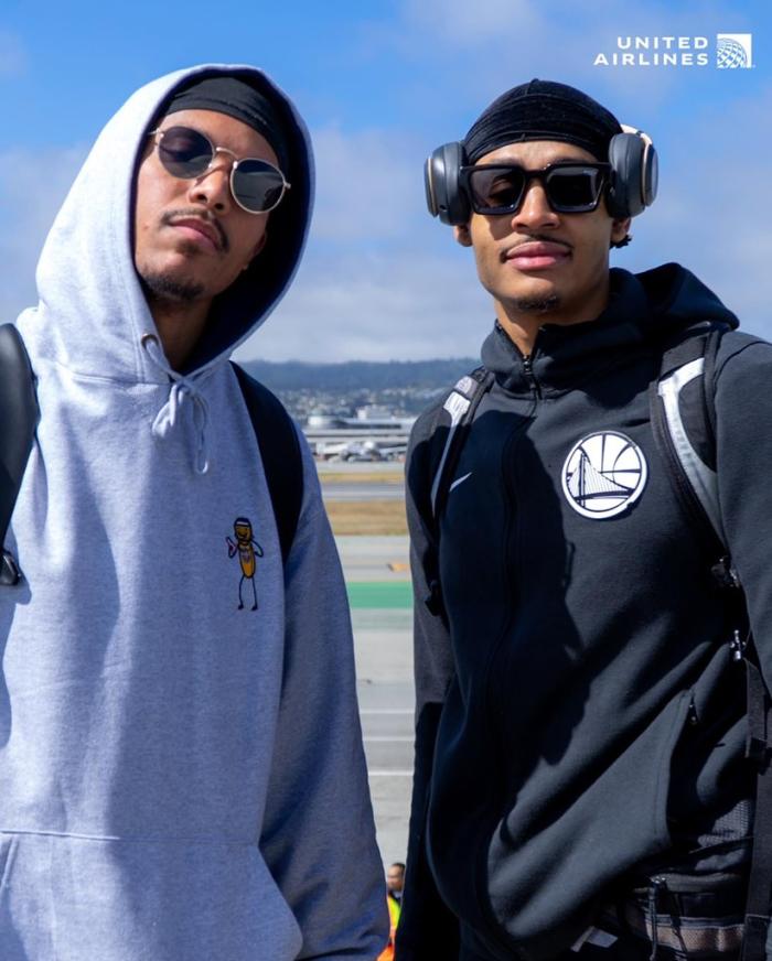 JRS直播06月07日讯 ,经过总决赛前两场的对决,勇士和凯尔特人打成1-1平,今日勇士官方晒出众将登机飞往波士顿的照片,配文写道:从旧金山飞往波士顿;库里汤普森领衔出征客场,水花兄弟表情严肃,格林和维金斯合影,小佩顿、伊戈达拉都随队出征。