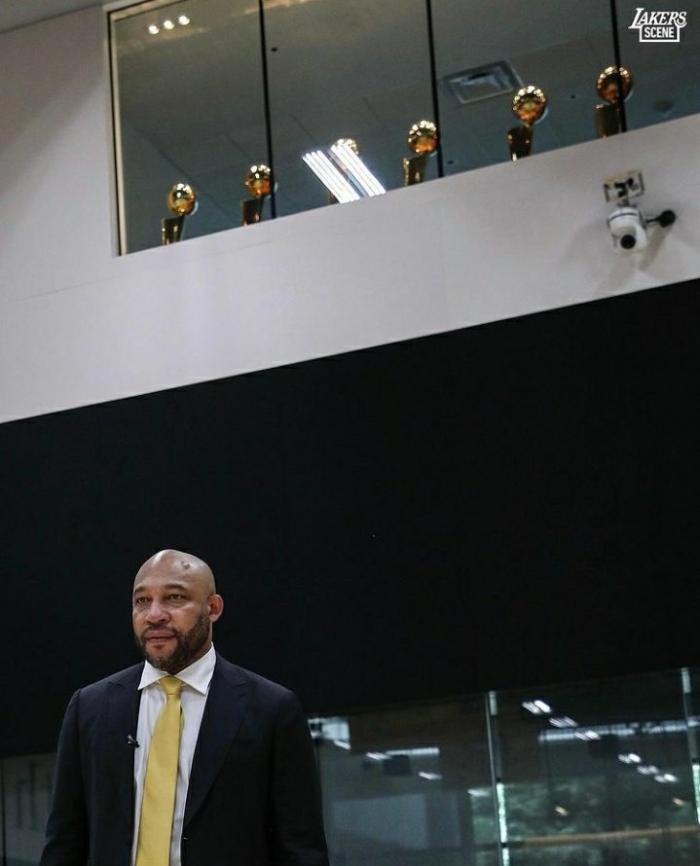 今日,威少参加了哈姆的新帅发布会,里弗斯、加布里埃尔和斯坦利-约翰逊也来到了现场,但他们都未接受采访;威少等球员用这样的方式支持哈姆,这也是哈姆担任湖人主帅的第一个发布会。