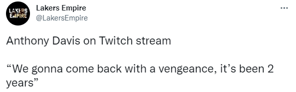 JRS直播06月07日讯 ,今日湖人球星浓眉大放豪言,在玩游戏时豪言:我们会回来复仇的,这已经2年了。不久前,湖人新帅哈姆正式亮相,直言浓眉是湖人重返总冠军水准的关键一环。