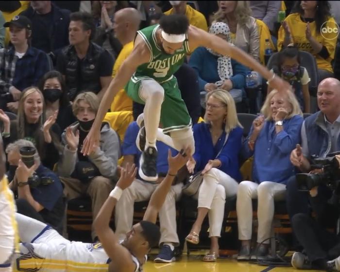 JRS直播06月06日讯 ,勇士和凯尔特人总决赛第二场正式打响,格林与布朗冲突,争吵险些打起来,但裁判没有吹罚技犯,格林逃过被驱逐;此前格林已经吃到一次技犯。