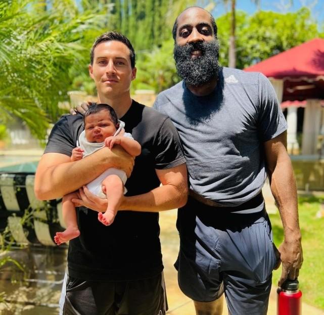 JRS直播06月04日讯 ,NBA训练师Paul J. Fabritz更新社媒,晒出了他和哈登的合影。照片上,Fabritz抱着孩子,哈登一手拎着水壶,一手搂着他的肩膀,露出笑容。Fabritz写道:“和詹姆斯-哈登进行了休赛季早期的训练,很兴奋想要看看詹姆斯(哈登)通过完整的休赛期训练能做到些什么。一个关键的夏天!”