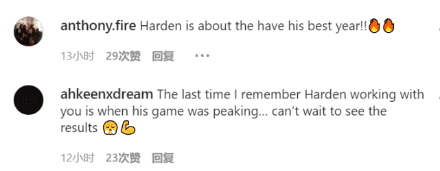 “我记得上一次哈登和你一起训练,是他的状态处于巅峰时期……等不及看到(这次训练的)成果了。”