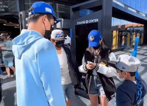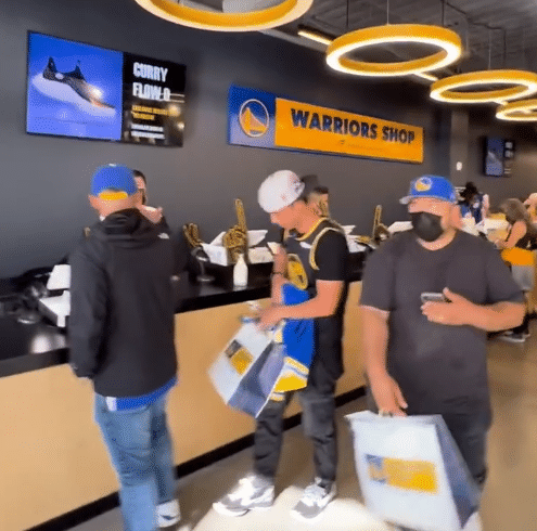 在总决赛G1期间,不少华裔华人就去到现场观战,他们也通过社交媒体记录下了在勇士主场大通中心观看比赛的前后。我们可以看到,都说主场比赛是“大炮一响黄金万两”,丝毫不为过,球馆周边的俱乐部官方商店,用人挤人来形容是非常恰当的。