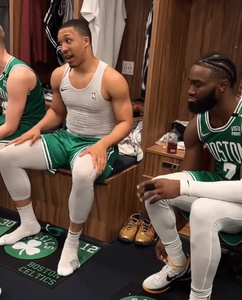凯尔特人更衣室也曝光,可以看到斯玛特等人情绪还是很稳定的,全队没有因为这样一场总决赛的末节大逆转而疯狂庆祝,或者是核心、主帅的激情演讲之类,依旧是和平时一样,每个人继续做着自己的工作。