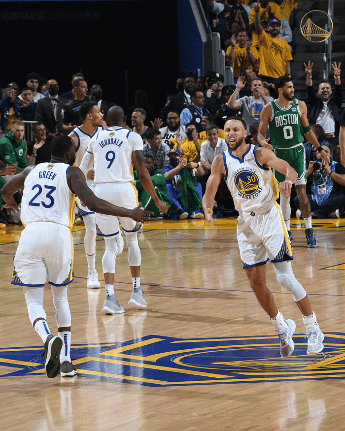 今年总决赛首战,库里第一节打满12分钟9投7中、三分8中6,单节投进6记三分狂砍21分,手感滚烫不可阻挡,萌神打疯了;到了第二节,凯尔特人反扑并且反超比分,库里单节2次出手全都打铁,还早早身背3次犯规陷入犯规困扰,上半场还剩54秒,库里下场时沮丧摇头。