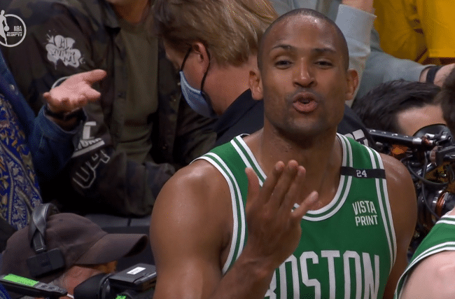 JRS直播06月03日讯 ,NBA总决赛第一场,凯尔特人客场120-108逆转勇士从而喜提开门红,系列赛大比分1-0领先;凯尔特人一度落后15分,末节全队下起三分雨,40-16疯狂逆转,杰伦-布朗和霍福德都是绿军逆转大功臣,其中霍福德12投9中、三分8中6拿到全队最高的26分,末节11记太狠,握拳以及送飞吻疯狂庆祝。
