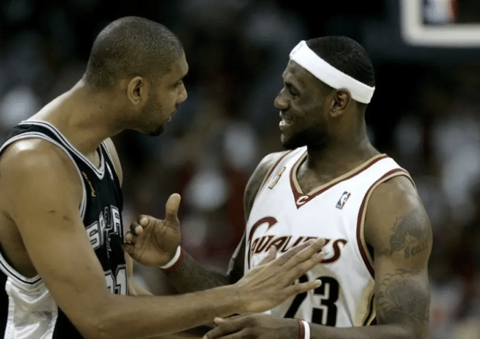 当时詹姆斯23岁,带领骑士首轮4-0横扫奇才、东部半决赛4-2淘汰篮网和东决4-2淘汰活塞,生涯第一次杀进总决赛,无奈总决赛被马刺4-0横扫,当年邓肯对老詹说了一句:未来是你的。