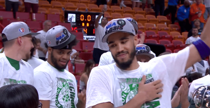JRS直播05月30日讯 ,NBA东决系列赛正式结束,凯尔特人4-3淘汰热火从而夺得东部冠军,时隔12年重返总决赛;塔图姆和布朗双探花都是生涯首次晋级总决赛;24岁塔图姆夺得东决MVP(拉里-伯德奖),总决赛大战勇士,将和库里争夺FMVP。