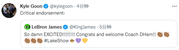 JRS直播05月28日讯 ,湖人新任主帅已经敲定,雄鹿助教达尔文-哈姆成为湖人第28任主帅,和湖人签下一份4年执教合同,合同金额暂时曝光;詹姆斯已经激动发声,欢迎哈姆执教湖人。