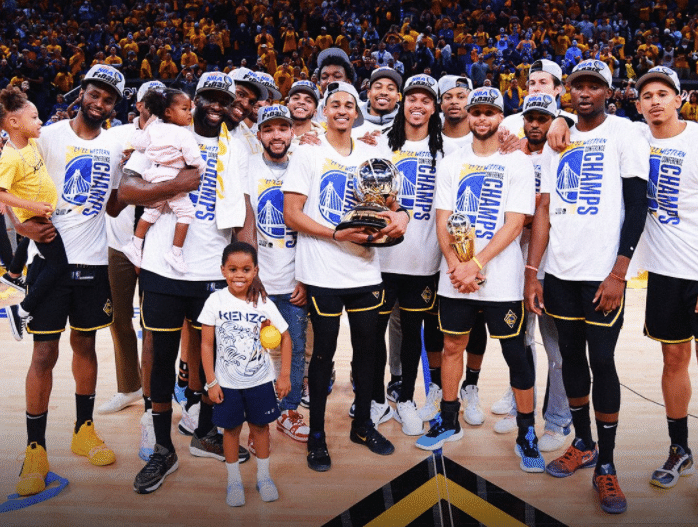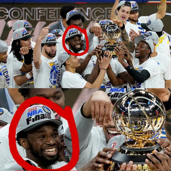 在西部冠军颁奖现场,前勇士冠军成员利文斯顿为勇士颁发西部冠军奖杯,把奖杯递给格林,后者高举奖杯庆祝,之后普尔等球员都围过来,一起举起西部冠军奖杯,维金斯、库明加都咧嘴大笑;赛后库里和格林都拥抱维金斯,并且表示:欢迎来到这个派对。
