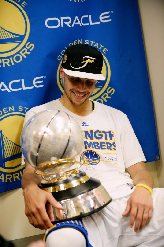 库里全票当选西决MVP,格林第一时间抱起库里庆祝,库里捧起魔术师约翰逊杯,早已笑得合不拢嘴,笑着和队友击掌庆祝,此时现场球迷集体高呼MVP;西决系列赛,库里场均拿到23.8分7.4助攻6.6篮板,是勇士全队表现最好的球员,当选西决MVP实至名归。