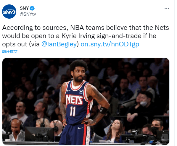 JRS直播05月27日讯 ,曝篮网愿意交易欧文,据纽约记者Ian Begley报道,若欧文今年夏天不执行下赛季的球员选项,篮网将会接受欧文的先签后换交易。
