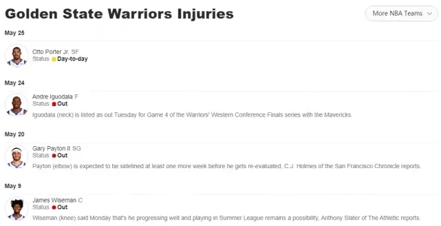 JRS直播05月26日讯 ,勇士和独行侠将在明天迎来G5大战,最新伤情已经出炉。独行侠一方还是老样子,小哈达威因左脚手术继续缺阵,勇士一方,除了确定缺席的小佩顿(左肘骨折)、伊戈达拉(颈椎伤病)、怀斯曼(右膝伤病),波特处于每日观察的状态,出战成疑。