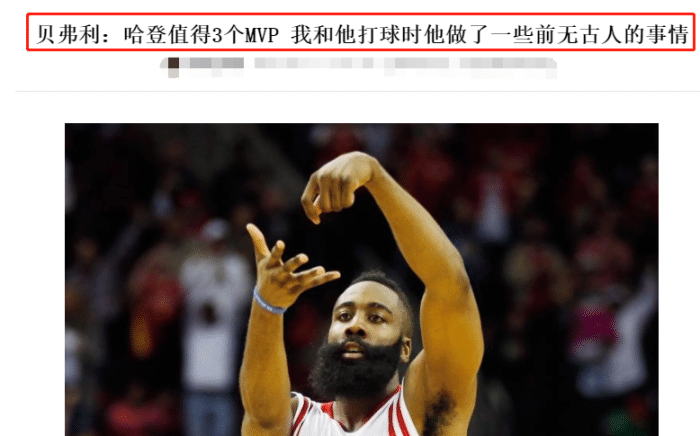 “哈登至少值得三个MVP,在和他一起打球时,他做了其他人从没有做到的事情。76人队应该给哈登超级顶薪,因为他是哈登,他改变了比赛”。