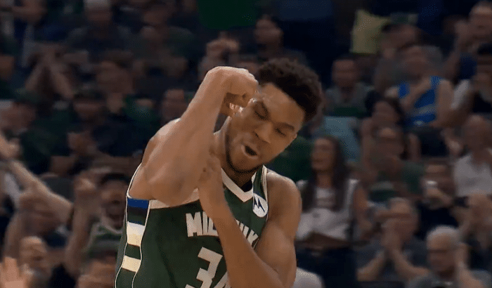 今日一战,雄鹿开场进攻不顺,字母哥先后造斯玛特、格威和杰伦-布朗犯规,连续6罚全中,面对凯尔特人的疯狂火力,字母哥迎着格威急停中投,强打霍福德抛投得分,带队8-0打停绿军,此时字母哥拍打二头肌疯狂庆祝;暂停回来,两队僵持对决,字母哥外线三分开张,再次强打霍福德以及晃飞霍福德上演霸气劈扣。
