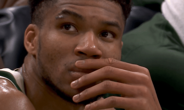 第二节,字母哥反击中撞倒斯玛特打成2+1(罚球没进)以及强突换手扣篮,不过单节8投2中仅贡献4分,字母哥手感下滑,雄鹿单节17-25又输8分,半场落后10分。