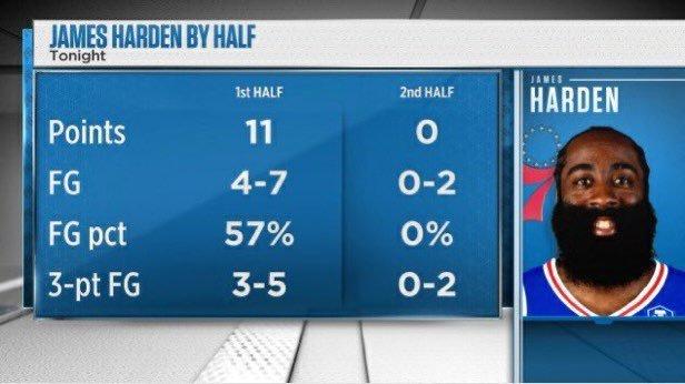 当然,这只是调侃而已,有没有西蒙斯,76人都没能走得更远。这笔交易最终谁输谁赢,还需要时间的验证,至少从当前局面来看,只怕暂时是双输。哈登在今天的比赛表现确实很糟糕,上半场11分,下半场0分。