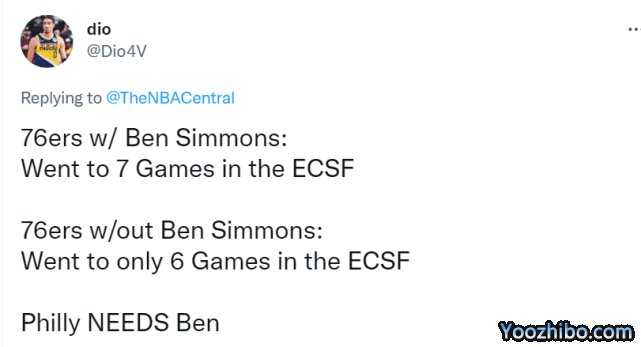 输给热火后,76人连续两年止步分区半决赛,未能晋级分区决赛。也有球迷晒出两年的战绩对比,调侃西蒙斯多赢了一场而已。“拥有西蒙斯的76人,在分区半决赛撑到了第7场;没有西蒙斯的76人,在分区半决赛只撑到了第6场。费城需要本(西蒙斯)。”