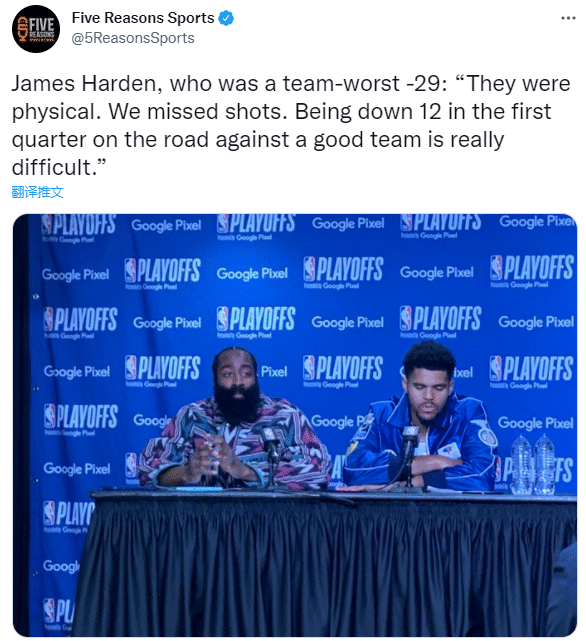 JRS直播05月11日讯 ,NBA季后赛76人客场35分惨败热火,全场被按在地板上摩擦,末节19-19溃不成军,恩比德和哈登都被打得提前放弃比赛,赛后哈登和恩比德回应惨败。