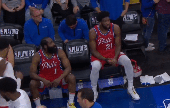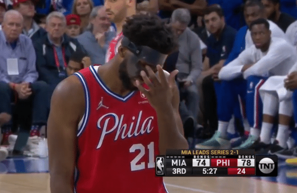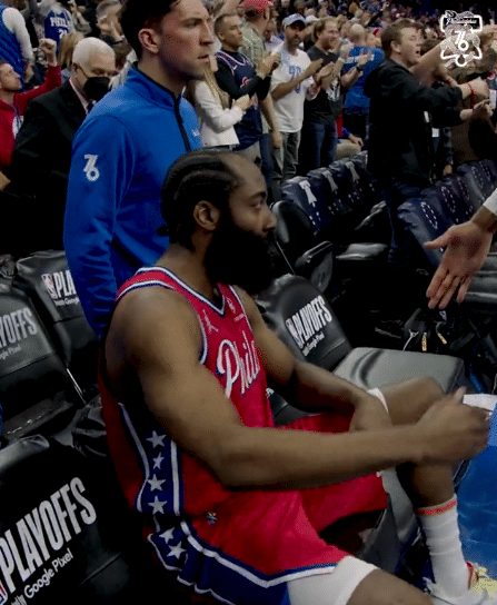 第二节,恩比德2投0中0分,哈登迎来爆发,里突外投单节独砍13分4助攻,振臂欢呼怒吼庆祝,再加上丹尼-格林输送两记三分,76人扩大领先,并且半场领先热火8分。