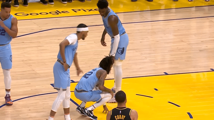 末节6分19秒,莫兰特运球遭遇包夹,期间普尔撞倒莫兰特的膝盖,之后抢球时还拉拽了莫兰特的右膝;莫兰特罚球时有些站不住,之后一瘸一拐走到场边,坐在替补席时十分沮丧,怒砸坐垫宣泄情绪;比赛还没结束,莫兰特提前返回更衣室。