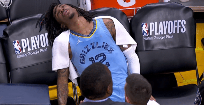 JRS直播05月08日讯 ,西部半决赛G3灰熊30分惨败勇士,比输球更扎心的是莫兰特伤退,全场出战36分钟21投13中拿到34分7助攻3篮板3抢断,可末节灰熊球星遭遇膝盖伤病,伤后十分痛苦和沮丧,怒摔坐垫泄愤,一瘸一拐返回更衣室。