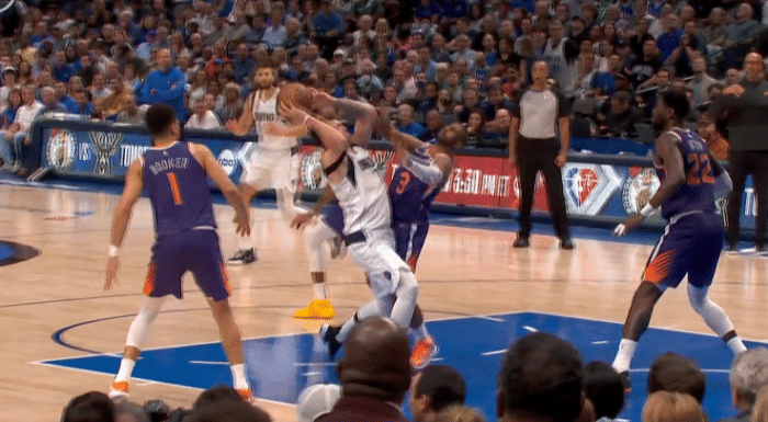 保罗37岁生日夜就像迷失自我似的,半场7次失误距离季后赛生涯单场8次失误仅差1次,不过第二节后半段,当太阳落后到14分时,保罗中投得分,外线三分也有,连续得分打停独行侠,期间布里奇斯吃到技术犯规,东契奇带队稳住局面,保罗防守时被东契奇撞倒,卢卡夸张模仿,质疑保罗假摔。