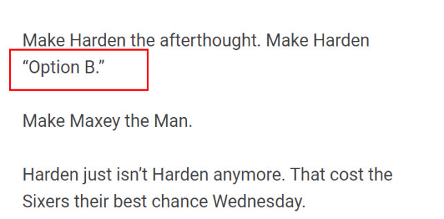 Marcus Hayes写道:是时候让哈登(一个32岁的球员打球像50岁)把火炬传给马克西了“。这是二年级的启示,他的表现就像是为春季的NBA篮球而生。”