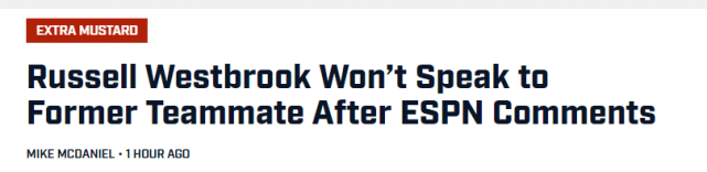 JRS直播05月06日讯 ,NBA评论员帕金斯在一档节目上谈到了威少,他表示自己在赛季中建议湖人交易威少后,威少就再也没有搭理过他。两人曾是雷霆前队友,关系一度很不错。