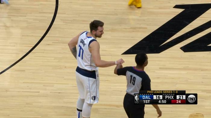 上半场,布伦森、芬尼-史密斯、贝尔坦斯、艾顿、麦基和约翰逊共有6名球员吃到3次犯规,从第二节7分38秒到7分05秒,艾顿、维恩莱特和保罗先后吃到进攻犯规,33秒连续3次进攻犯规,布伦森撞倒保罗也吃到进攻犯规;对于裁判的吹罚,东契奇找裁判讨说法,第一节和裁判击拳一幕曝光,卢卡略带笑意。