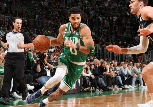 2. 杰伦-布朗上半场得到25分,创个人季后赛生涯半场得分新纪录。
