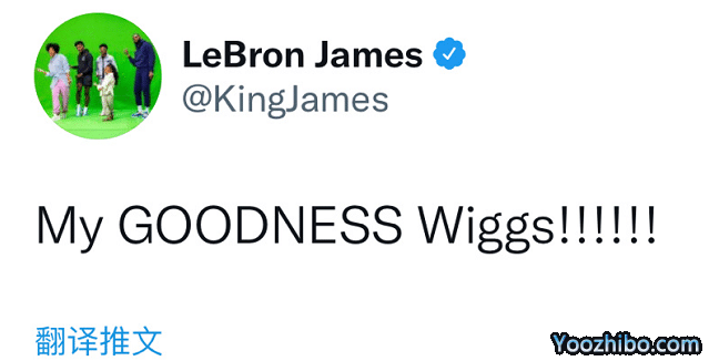 詹姆斯看到之后发推:“我的上帝,维金斯!”