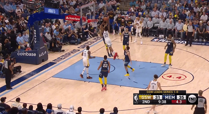 勇士在困境中表现依旧很强势,其中维金斯在比赛中从外线持球突破,他杀入内线之后迎着克拉克的防守,直接扣篮,也撞翻了克拉克,相当霸气。