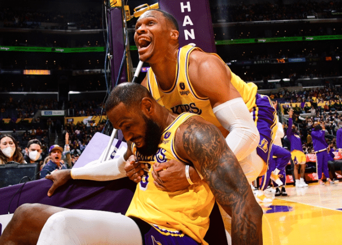 JRS直播05月03日讯 ,湖人的2021-22赛季早就已经结束了,威少和浓眉都在出局后首次现身,其中威少一身潮流打扮现身Met Gala(纽约大都会艺术博物馆慈善舞会),接受采访时咧嘴大笑;威少如此造型引争议,球迷晒照调侃威少防住了詹姆斯。