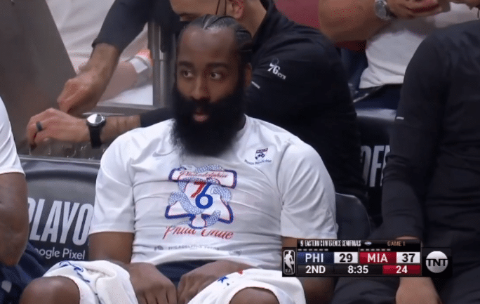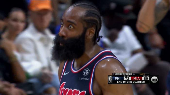 JRS直播05月03日讯 ,NBA季后赛分区半决赛,76人客场92-106不敌热火,大比分0-1落后;恩比德因面部骨折和脑震荡而缺席比赛,哈登带队出战,全场13投5中、三分7中2拿到16分9篮板5助攻5失误,如此状态的哈登惨遭吊打,第三节在场上怒瞪队友泄愤,末节5-18溃不成军,提前放弃比赛。