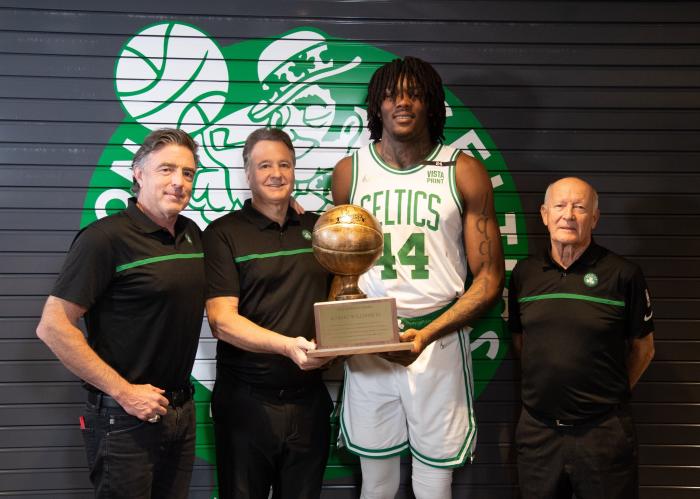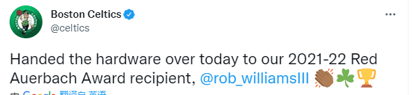 绿军悍将罗伯特-威廉姆斯获得红衣主教奥尔巴赫奖,这代表了全队最高的荣誉,该奖每年授予“最好地诠释了凯尔特人精神和价值的”现役球员、总经理、总裁以及教练。
