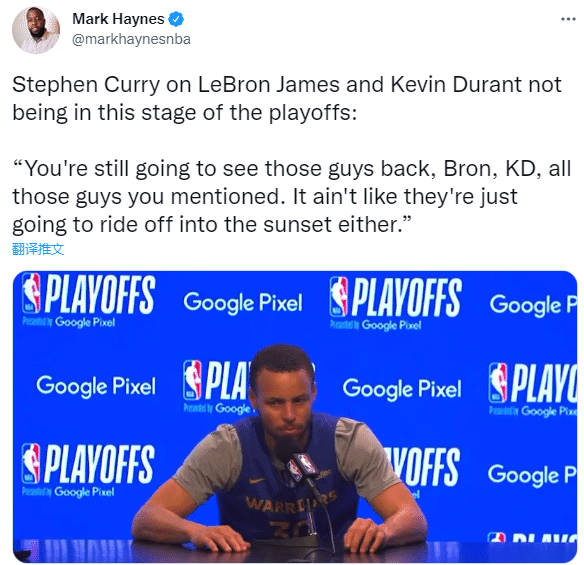 今日谈到次轮没有詹杜,库里高情商回应:我感觉现如今联盟里的天赋已经达到了一个历史级别的高度,能够看到新的面孔的感觉绝对很棒,但你肯定会看到那些家伙们回来的,勒布朗、杜兰特,你提到的那些人,他们也还没到故事的结尾呢!