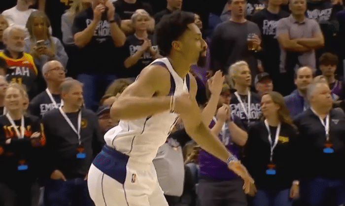 末节比赛开始后,克莱伯三分命中,克拉克森连得4分回应,米切尔篮下打中,丁威迪三分命中回应,独行侠保持着比分上的领先,最后时刻博格达诺维奇三分命中,比分来到了94平,布伦森三分强势回应,两队连续进攻不中,35秒戈贝尔暴扣得分,爵士落后1分,东契奇抛投不中,5秒钟康利走步违例,布伦森两罚一中,4.3秒爵士落后2分,爵士三分不中,独行侠战胜了爵士,西部半决赛,他们将会面对太阳。