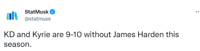 没想到,这样的畅想会那么快破灭!湖人受到伤病困扰,威少也一直融不进球队的战术体系,湖人最终只排在西部第11位,连附加赛的资格都没有。篮网也遭遇尴尬,欧文因拒绝打疫苗缺席了大量场次,杜兰特也受伤了,哈登中途申请交易离队。没有哈登的情况下,欧文杜兰特联手只打出9胜10负的战绩。篮网通过附加赛进入季后赛,但首轮就被绿军横扫出局。