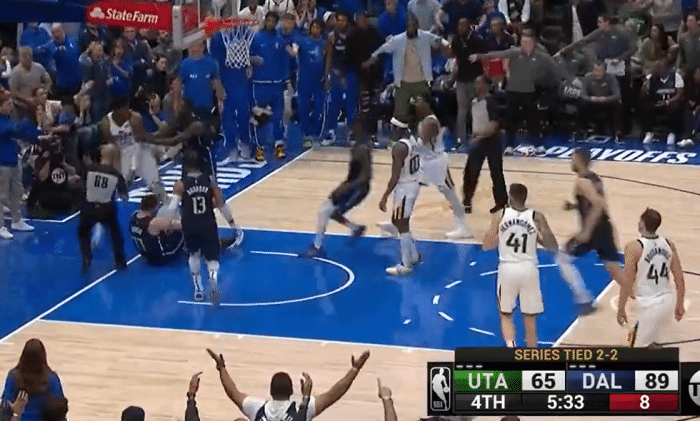 JRS直播04月26日讯 ,NBA季后赛爵士客场77-102惨败给独行侠。这场比赛独行侠在东契奇带领下,第三节完全拉开比分,比赛也早早进入垃圾时间。而在第四节比赛最后阶段,爵士替补中锋怀特塞德还对东契奇凶狠犯规并带有附加动作,引发了双方大规模冲突。而从慢动作细节来看,这支爵士真的人心散了。