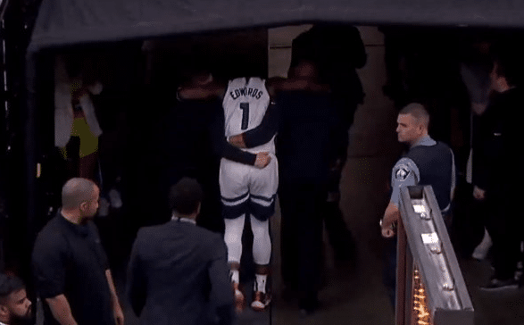 JRS直播04月24日讯 ,NBA季后赛再次迎来糟糕消息。森林狼状元秀爱德华兹在首节中段,突然膝盖出现问题,随后主动申请离场,并在两人的帮助之下返回更衣室。爱德华兹随后回归,虚惊一场。