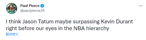 绿军名宿皮尔斯发推写道:我认为杰森-塔图姆可能会在我们的眼前超越凯文-杜兰特。
